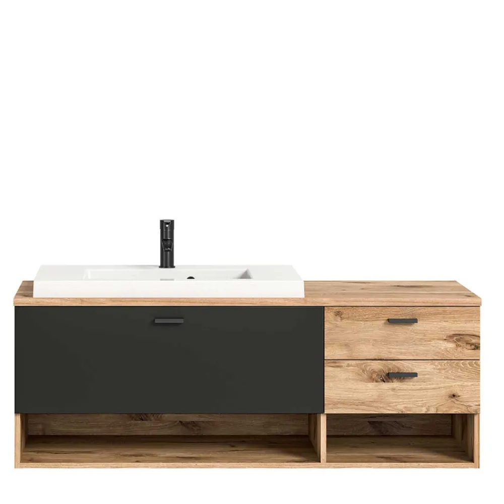 - Attraktiver Waschbeckenschrank in Dunkelgrau und Wildeichefarben