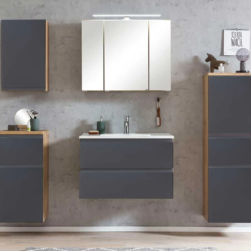 - Geradliniger Waschtisch in Dunkelgrau und Wildeichefarben