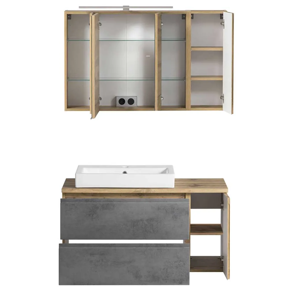 - Trendige Badmöbel in Betongrau und Wildeichefarben
