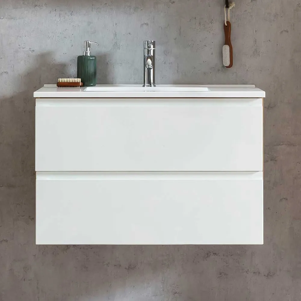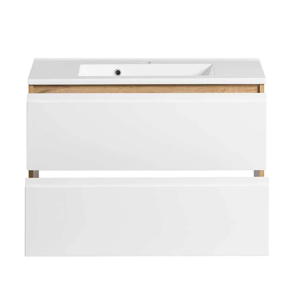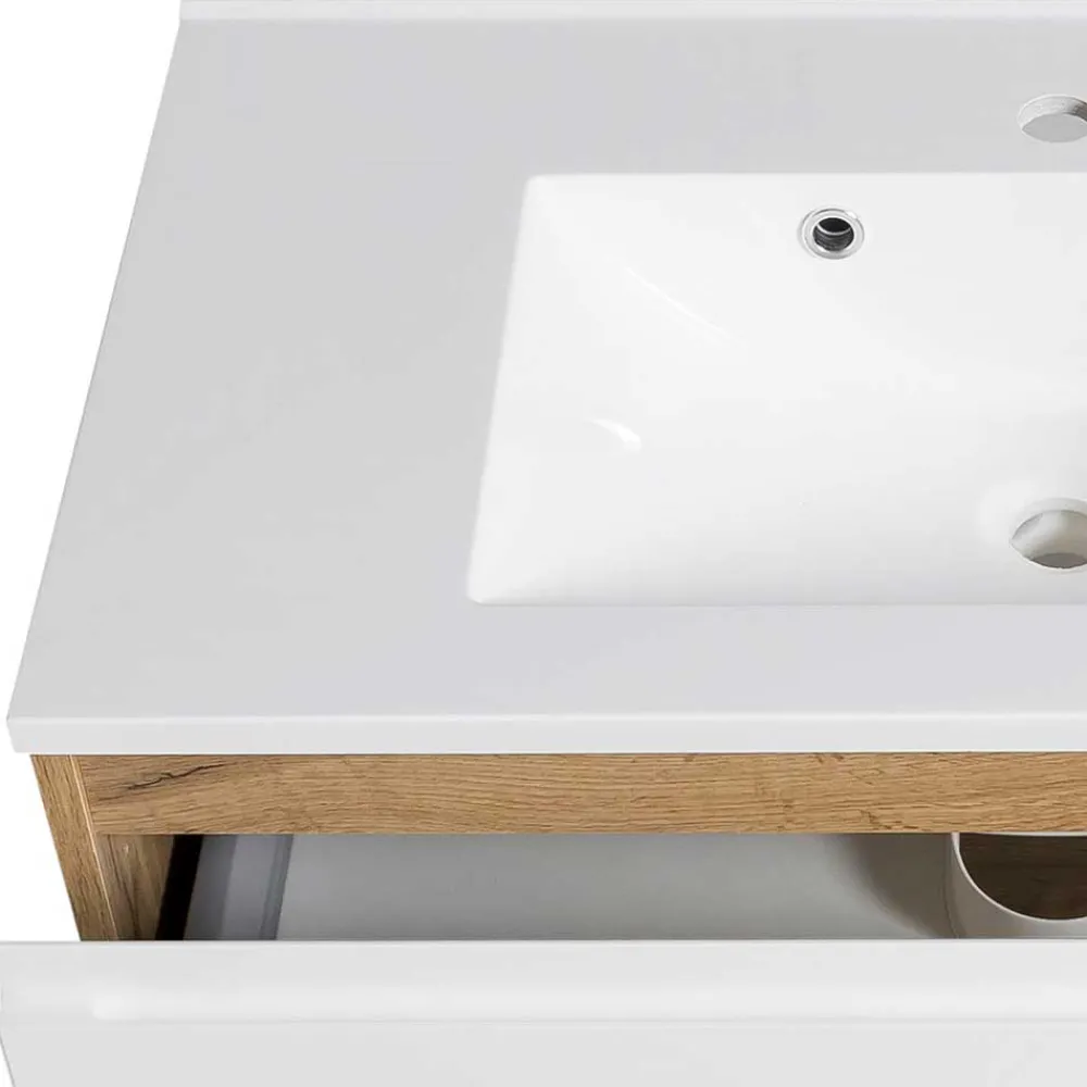 - Eleganter Waschtisch in Weiß und Wildeichefarben