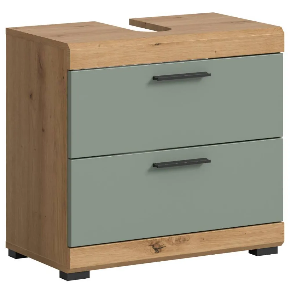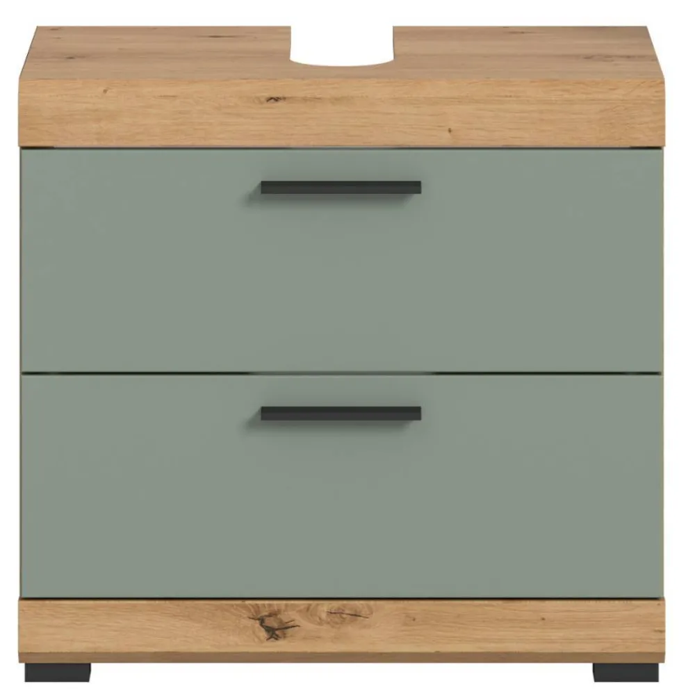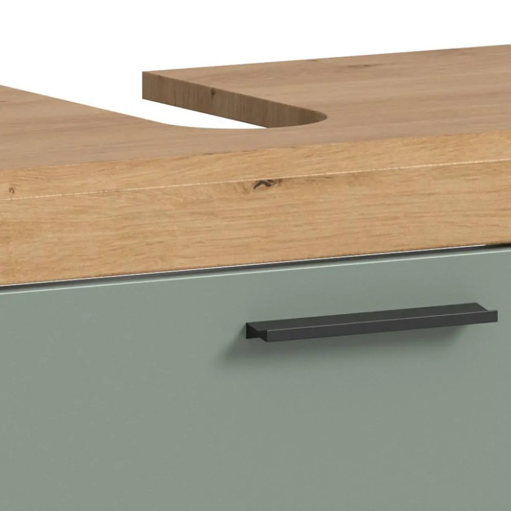 - Kompakter Waschbeckenschrank in Salbei und Wildeichefarben