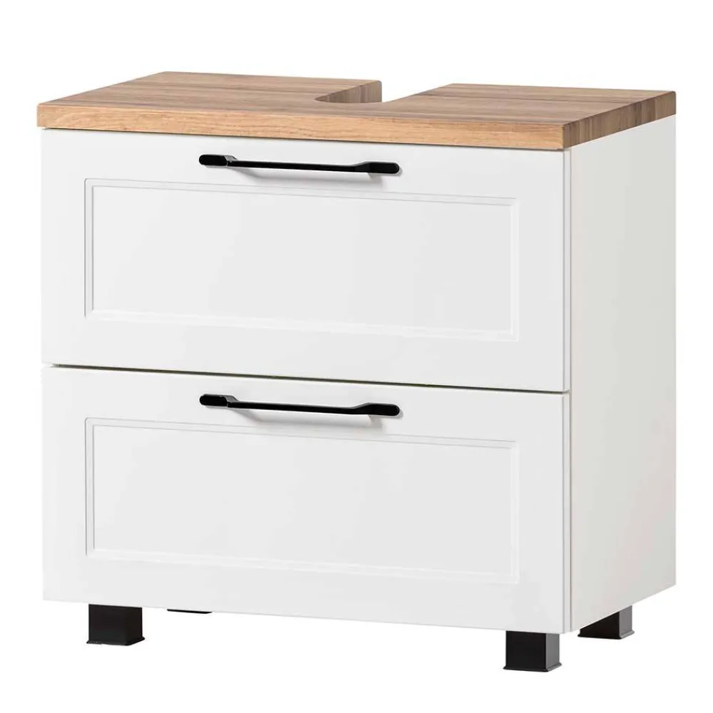 - Top Waschbeckenunterschrank in Weiß und Wildeichefarben