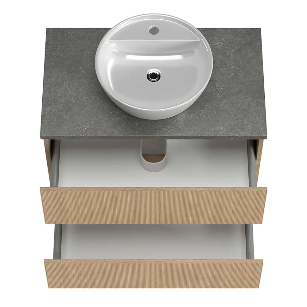 - Zwei geräumige Schubladen mit Metallauszug und Soft-Close-Funktion, in der oberen ein Siphonausschnitt