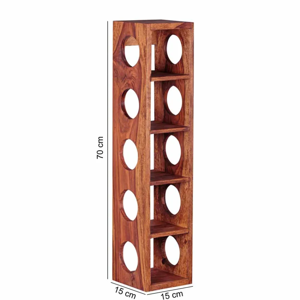 - Regal bietet fünf offene Ablagefächer mit Öffnungen für fünf Weinflaschen