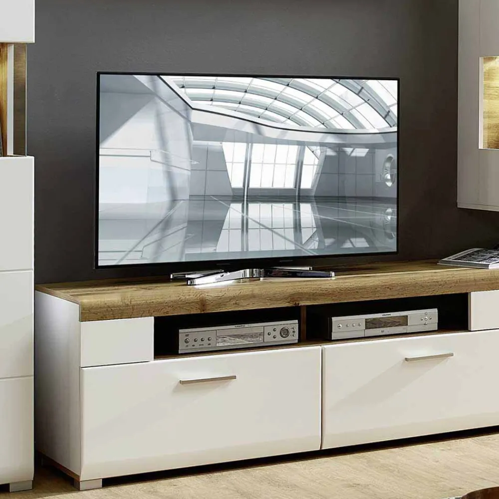 - Elegante Wohnkombination in Weiß matt und Eichefarben