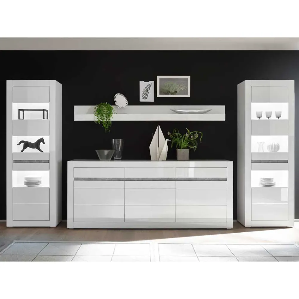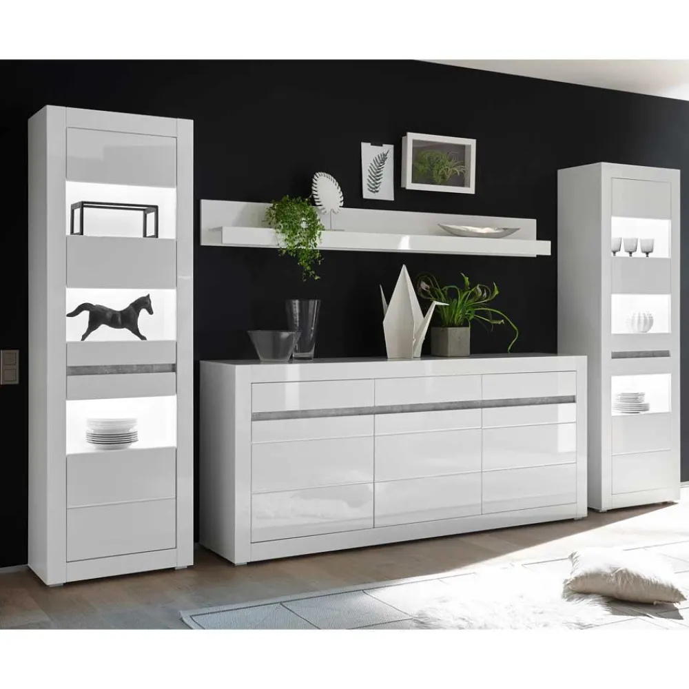 - Fantastische Wohnwand in Weiß Hochglanz