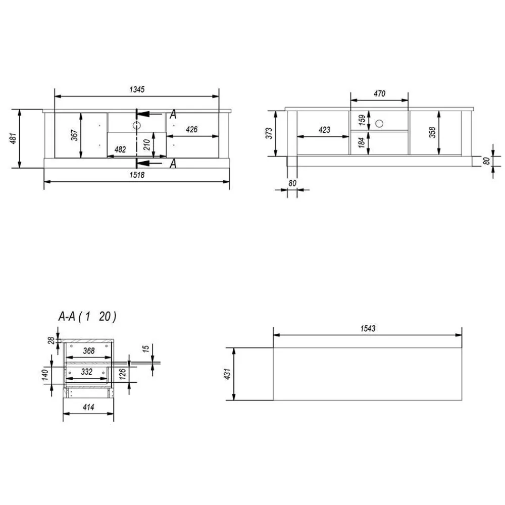 - Maße (BxHxT): 150x19x20 cm