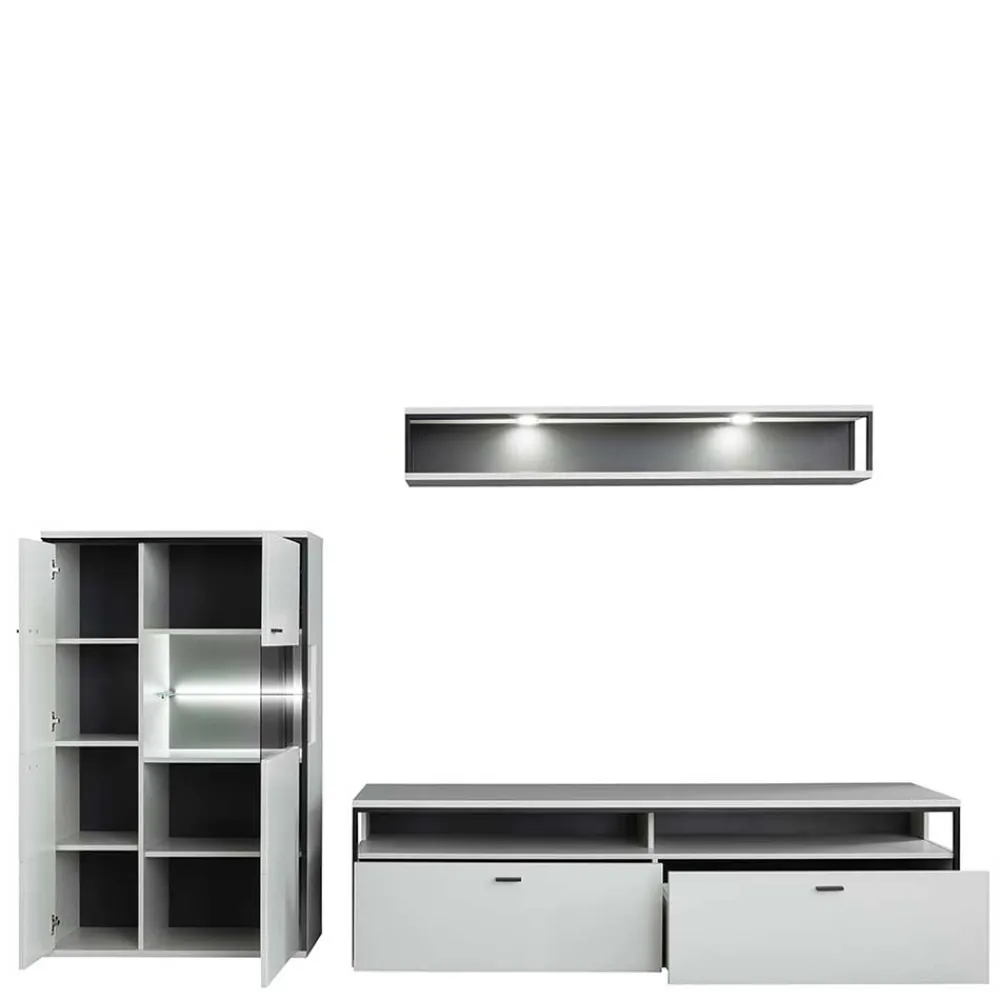- Interessante Wohnwand in Weiß und Schwarzgrau