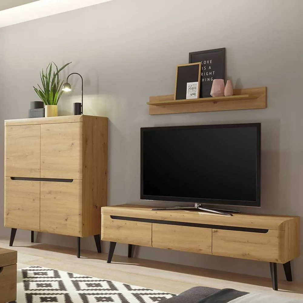 - Junge Wohnwand in Wildeichefarben und Schwarz