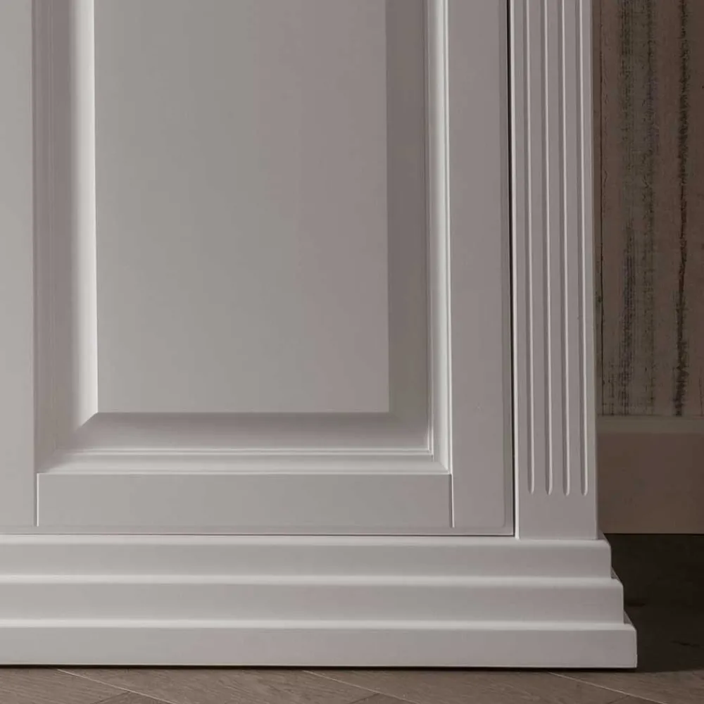 - Zwei große Holztüren und eine kleine Glastür, gedämpfte Metallbeschläge