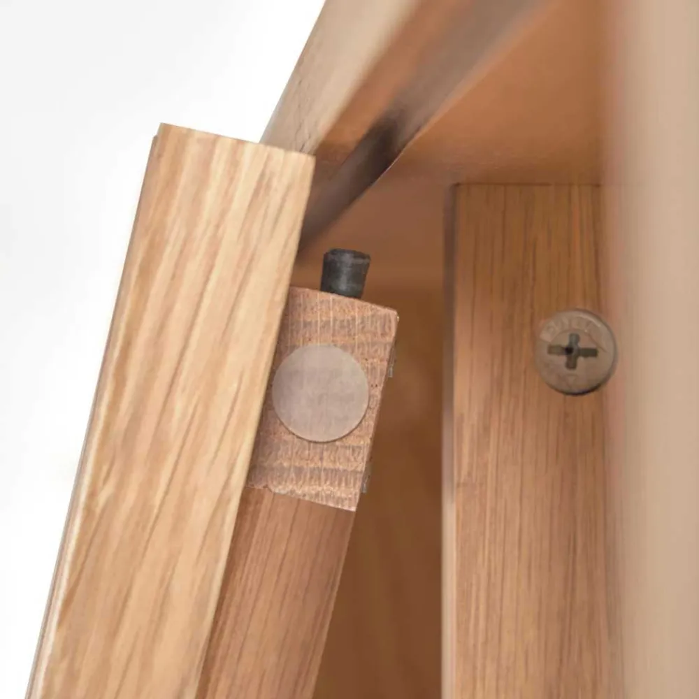 - Aus Spanplatte (Korpus) und Eiche Massivholz (Front, Gestell) hergestellt