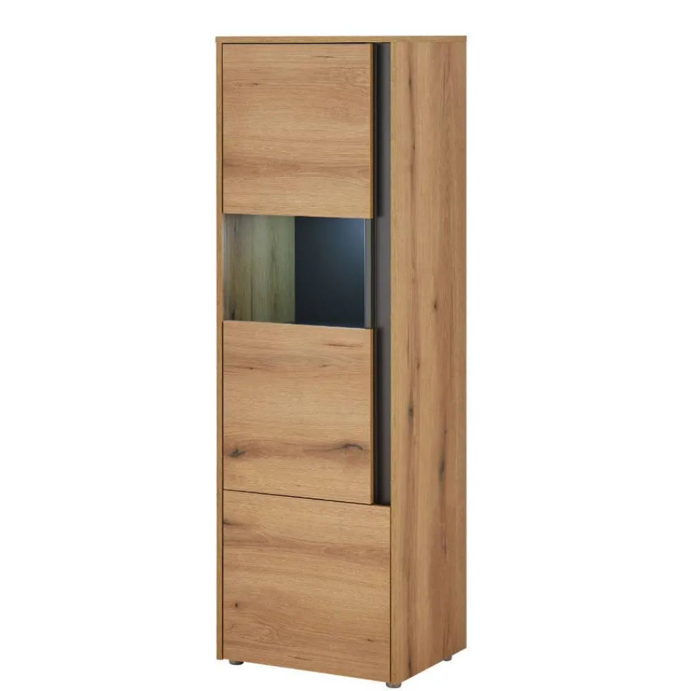 - Dekorative Vitrine in Wildeichefarben und Anthrazit