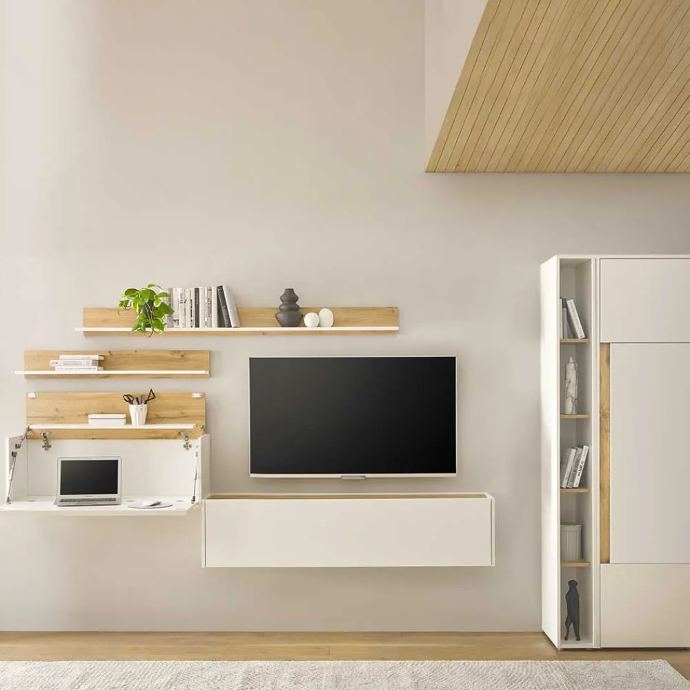- Aktuelle Wohnwand in Weiß und Wildeichefarben