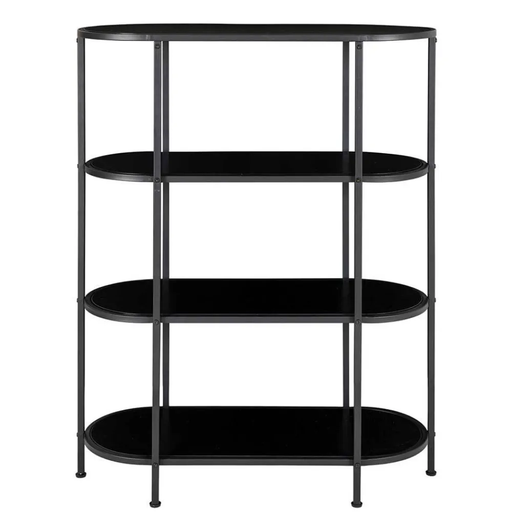 - Aus stabiler Spanplatte (Böden) und Stahl (Gestell) hergestellt