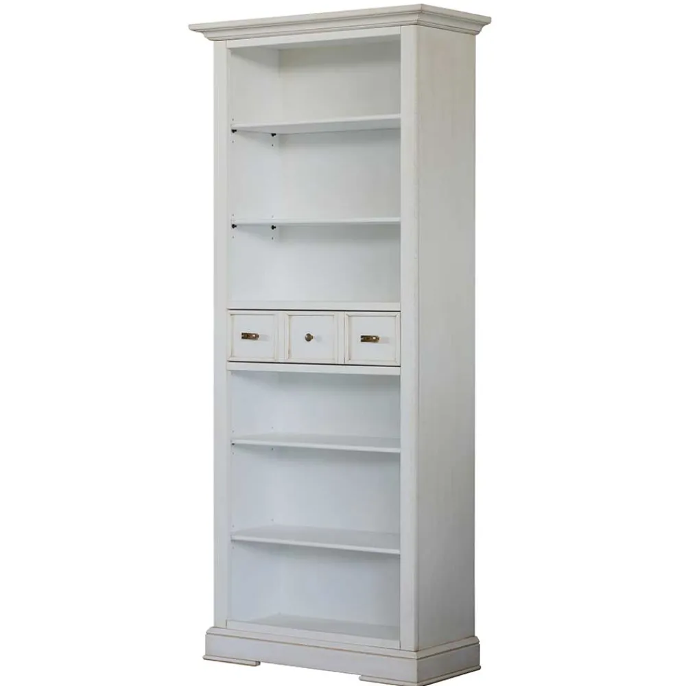 - Elegant präsentiert sich das Bücherregal in Antikweiß
