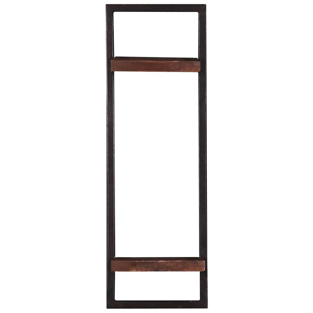 - Schlankes Hängeregal in Teak antik Dunkelbraun und Schwarz