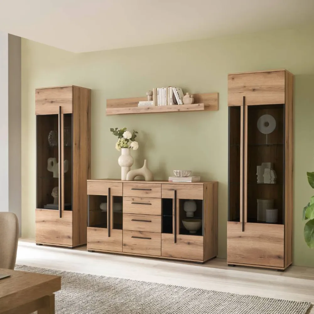 - Innen zwei Glasböden und zwei Holzwerkstoffböden