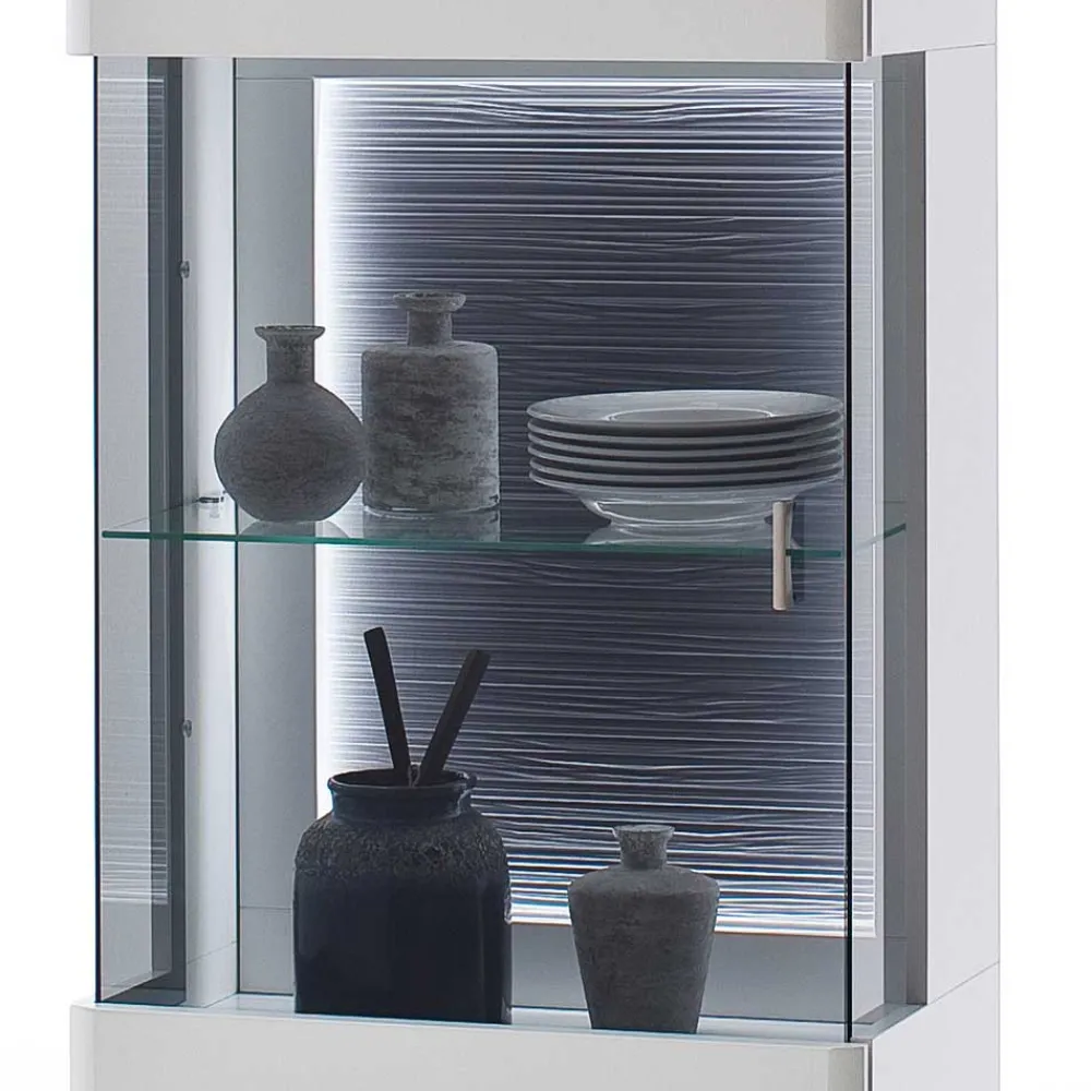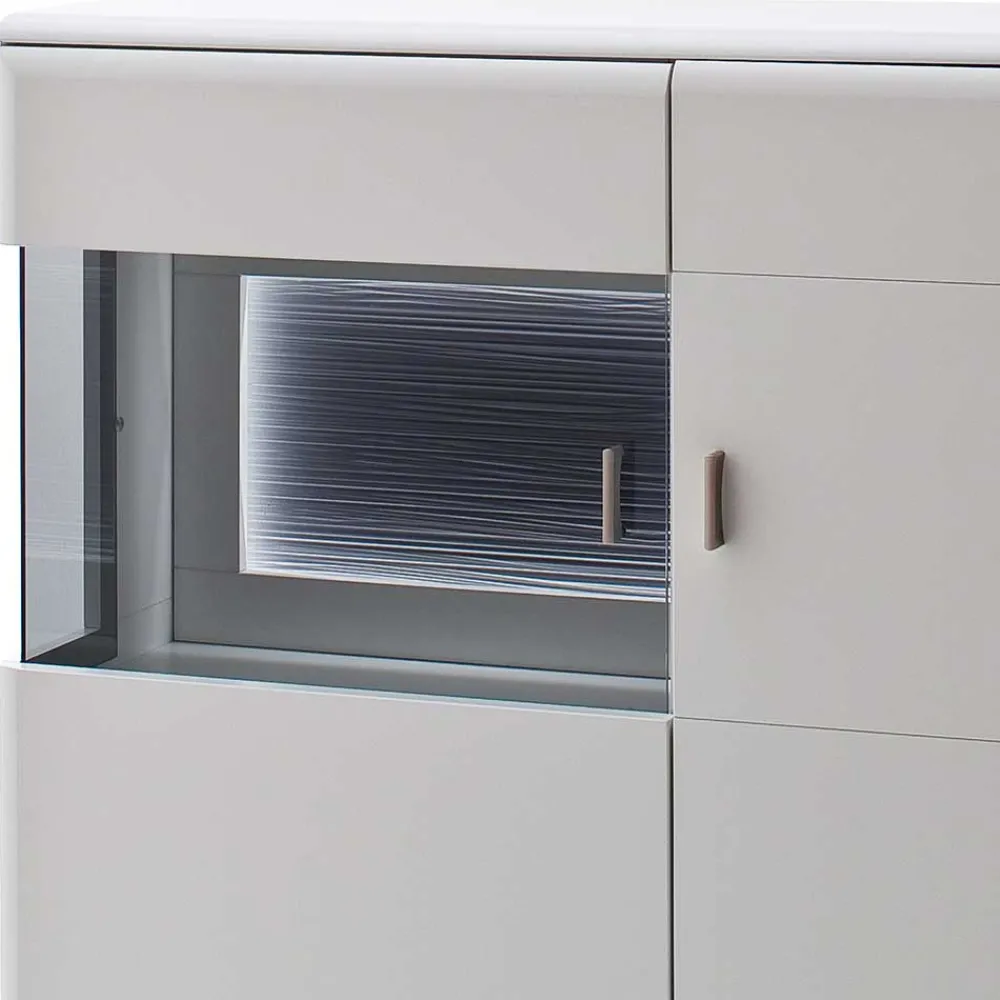 - Vierteilig, bestehend aus: Highboard, Vitrine, Wandboard und TV-Board
