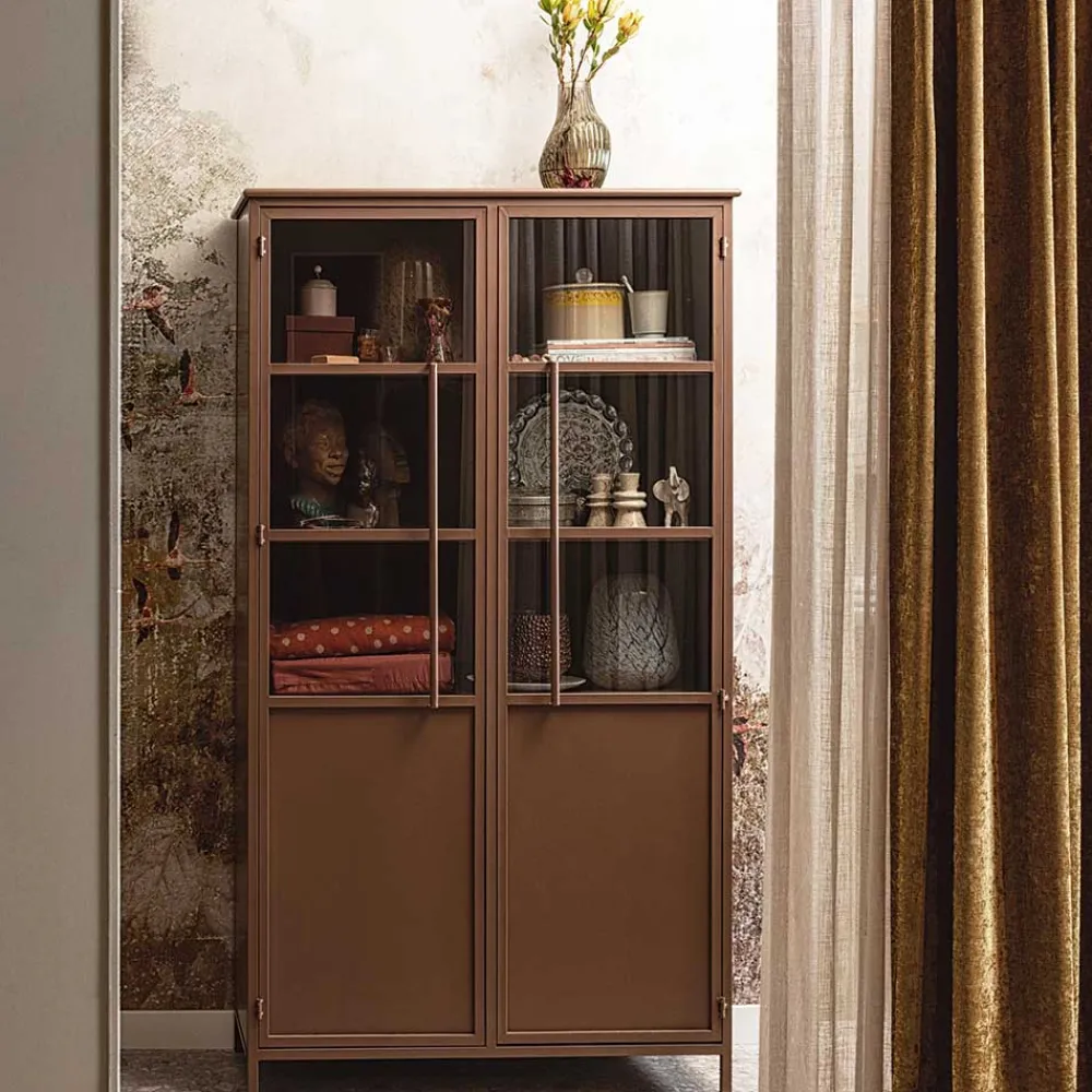 - Trendiger Vitrinenschrank in Braun