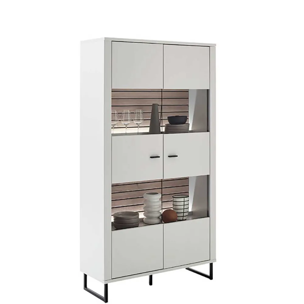 - Dekorative Kombi-Vitrine in Weiß und Wildeichefarben
