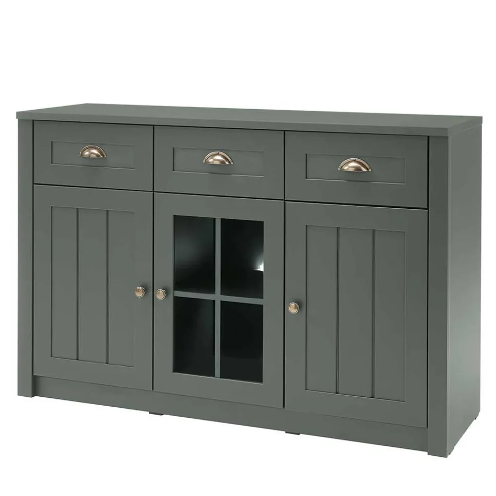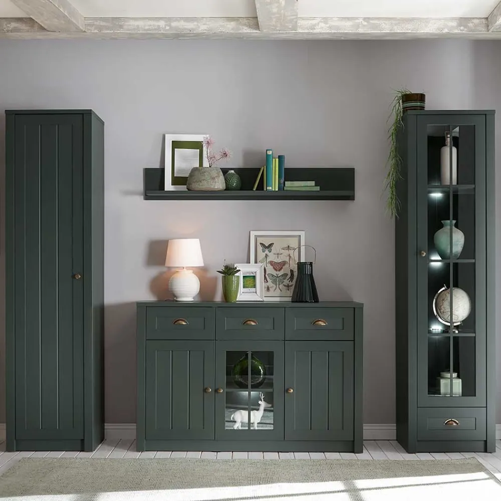 - Melaminbeschichtet in dunklem Grün, Oberflächen strapazierfähig und pflegeleicht