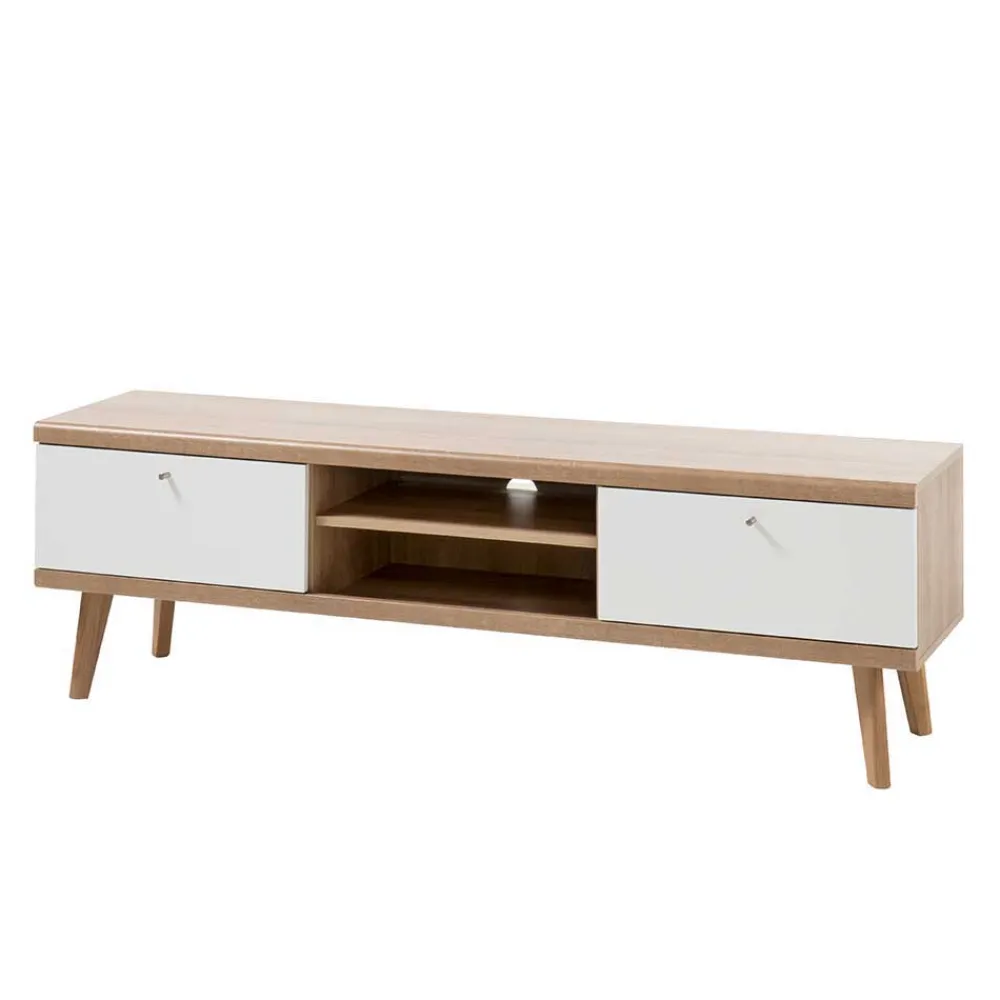 - Erstklassige Wohnwand in Weiß und Eichefarben