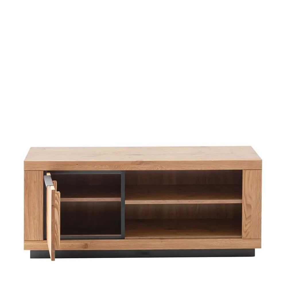 - Aktuelle Wohnwand in Wildeichefarben und Schwarz