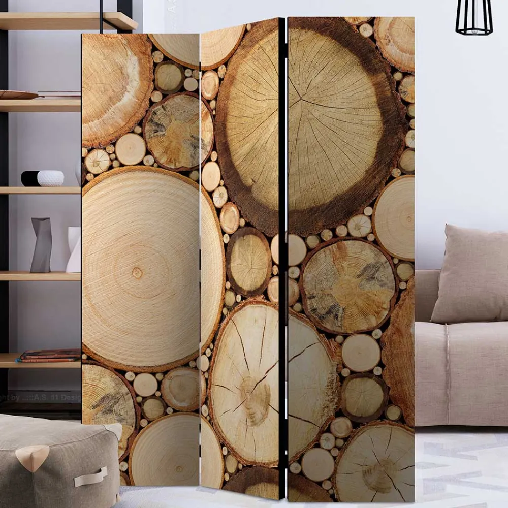 - Rustikal anmutender Paravent in Holz Optik