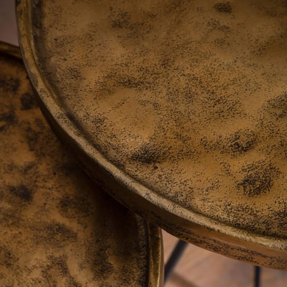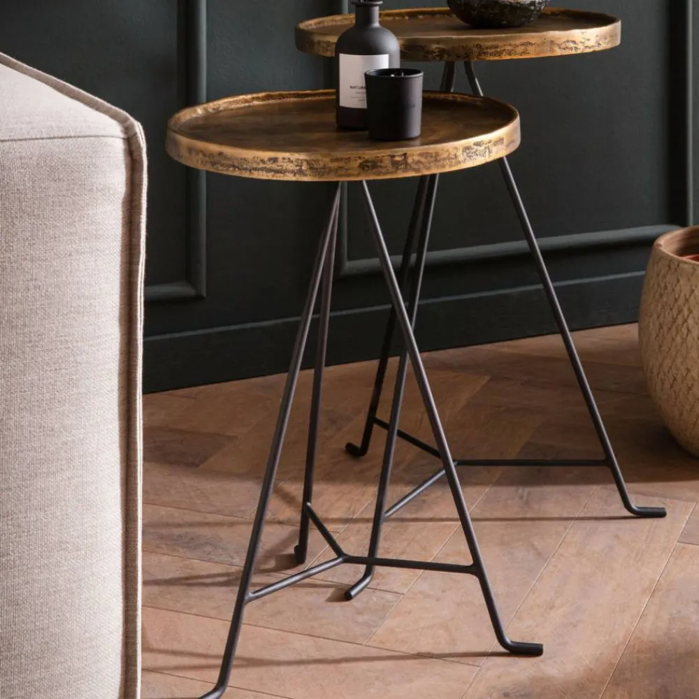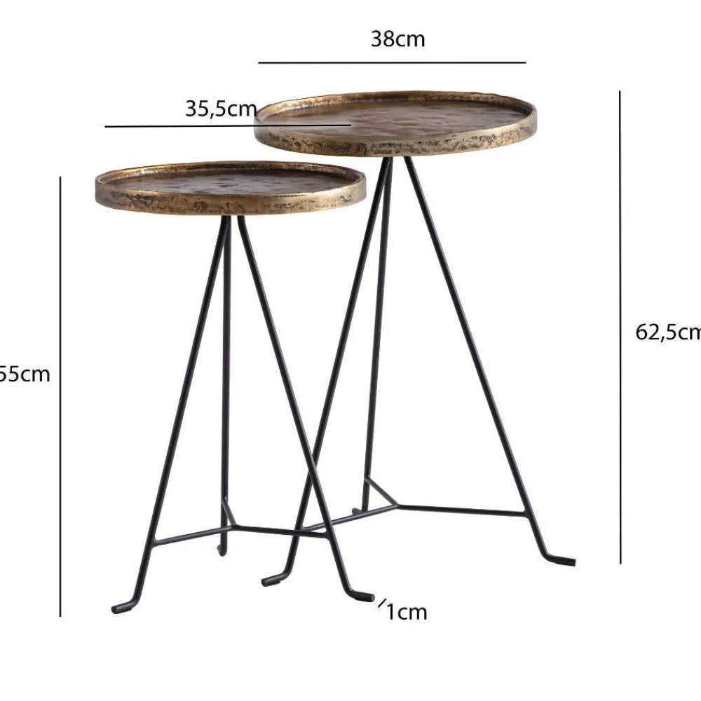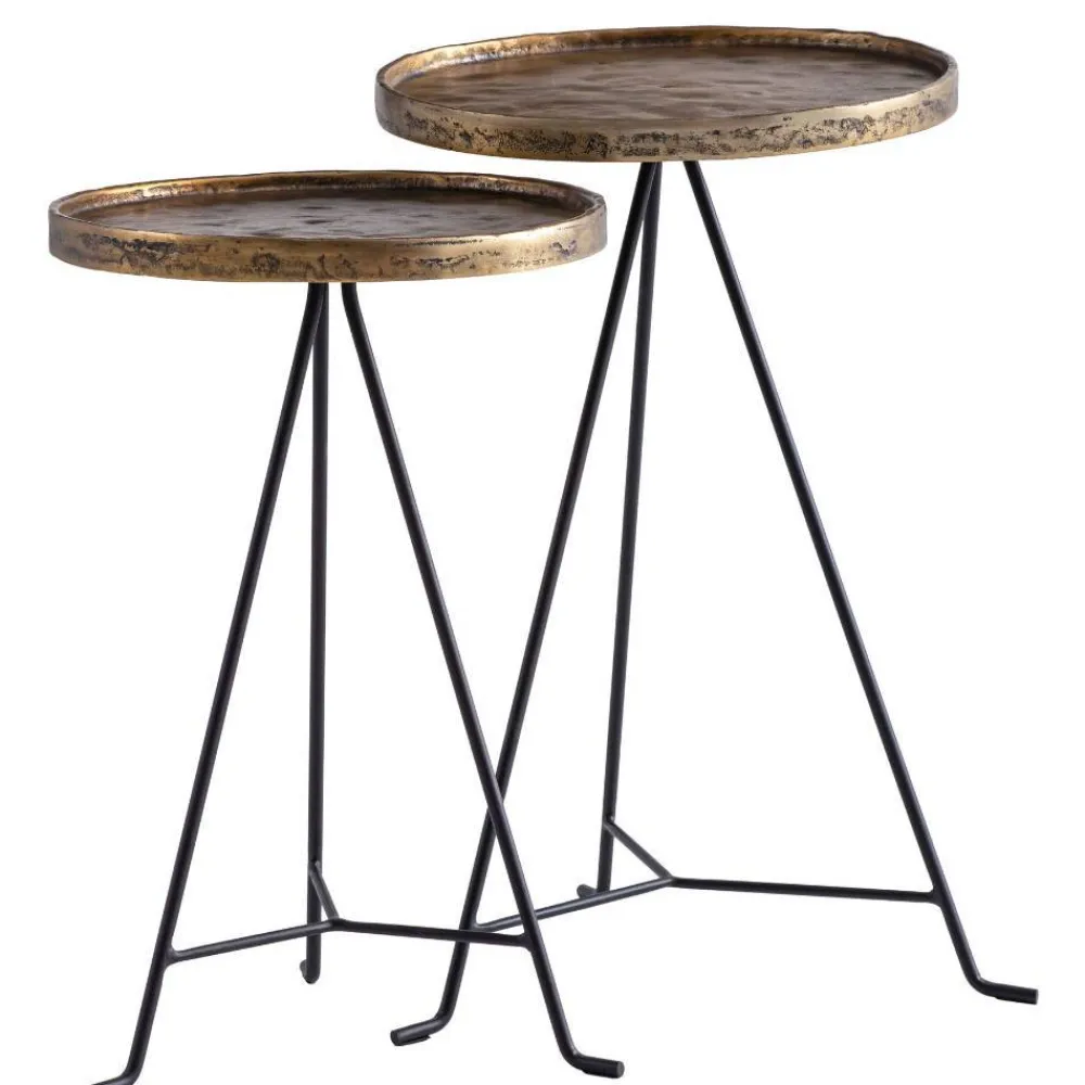 - Ansprechende Beistelltische in Altgoldfarben und Schwarz